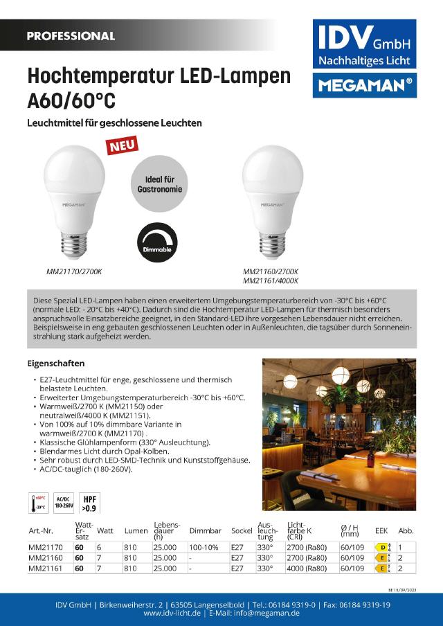 Hochtemperatur LED-Lampen A60/60°C